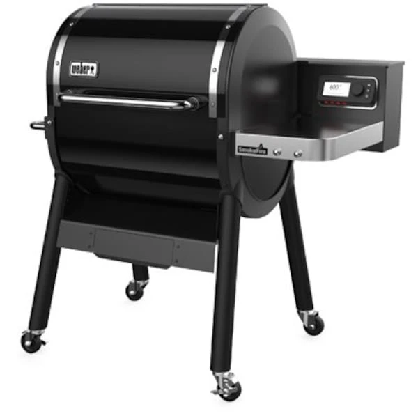 Weber Smokefire EX4 24 in Wood Pellet Grill Black 2nd Generation With a temperature range of 200600 degrees, you can bake, sear and everything inbetween Plated steel cooking grates provide 672 sq in of duel grilling space Monitor your grilling process on a smartphone with Weber connect that includes a LCD display, 2 meat probes with a four probe capacity Stainless steel flavorizer bars prevent hot and cold spots Porcelain enamel lid and cookbox prevent rusting and cracking High capacity hopper holds 20 lb of pellets and has inclined auger to help prevent jams Easy access to ash catcher and grease drawer Additional replacement glow plugs included 4 swivel casters on a heavy duty steel cart frame on lidcookbox and 3 years on remaining parts