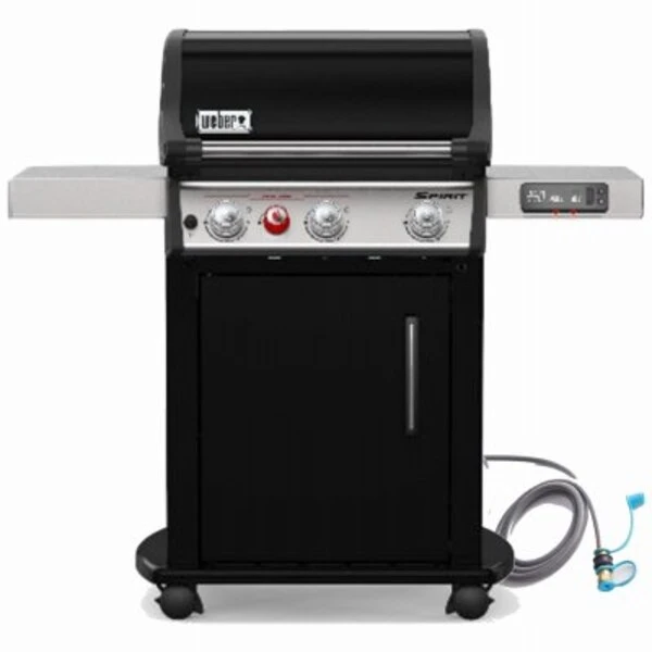 Weber Spirit II EX325s black NG gas grill Smart Tech integration monitors grill temperature, sends notifications to your smart phone and comes with one meat and one ambient probeGS4 grilling system includes easy start infinity ignition, 3 stainless steel burners that provide 32,000 BTU, stainless steel flavorizer bars that add the smokey flavor and the grease management system which helps reduce flareups Additional features include 7,500 BTU sear station 2 porcelain enamel cast iron cooking grates provide 424 sq in of cooking space, tuckaway warming rack adds 105 sq in 2 stainless steel side tables have tool hooks Porcelain enamel lid with builtin thermometer Stainless steel heat deflectors, polished chrome control knobs The enclosed cart is great for storage and has 2 large wheels and front casters 10 ft natural gas hose included Temporary reduction in MAP Holiday from 525 to 714 See MOL for reduction and partial reimbursement instructions