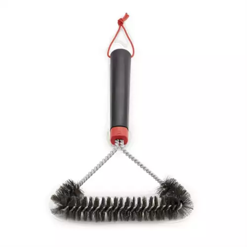 This three-sided grill brush is made to remove grease and debris from cooking grates of all sizes. The handle design provides a secure grip when brushing off stuck-on food or cleaning tight spaces. Use this grill brush to clean your grates before each use so that your grill lasts longer and your next meal is as delicious as the one before.