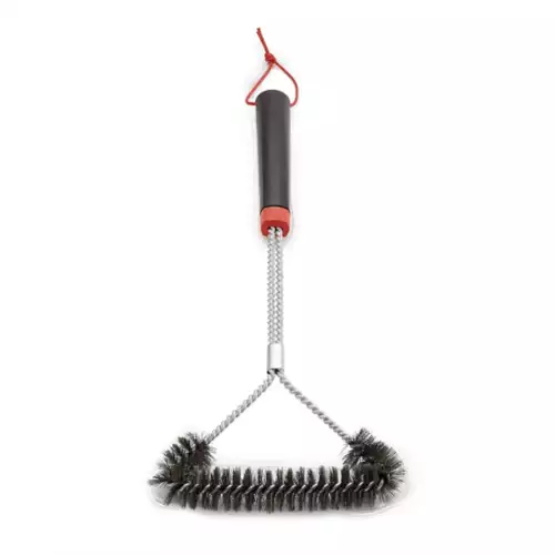 This three-sided grill brush is made to remove grease and debris from cooking grates of all sizes. The handle design provides a secure grip when brushing off stuck-on food or cleaning tight spaces. Use this grill brush to clean your grates before each use so that your grill lasts longer and your next meal is as delicious as the one before.