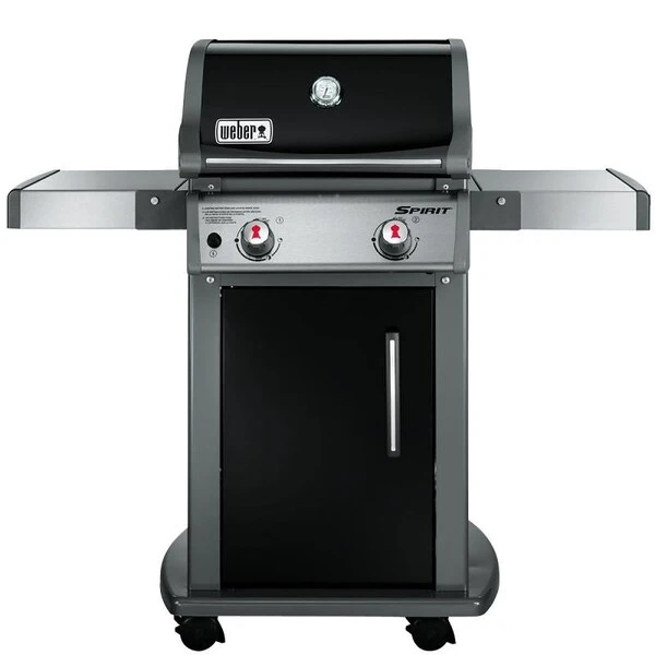 Two stainless steel burners 26,5000 Btuper hour input main burners Primary cooking area of 360 sqin, warming rack area 90 sqin, total cooking area 450 sqin Porcelain enameled, cast iron cooking grates Porcelain enameled Flavorizer bars Electronic crossover ignition system Porcelain enameled shroud with center mounted thermometer and painted aluminum endcaps Two stainless steel fold down tables Front mounted control panel Painted enclosed steel cabinet with stainless steel door Front access, porcelain enameled grease tray with catch pan Six tool hooks Two heavyduty front locking swivel casters Two heavyduty back swivel casters Dimensions with the lid open are 63 in H x 50 in W x 32 in D Owner’s guide and grilling guide included Tank not included